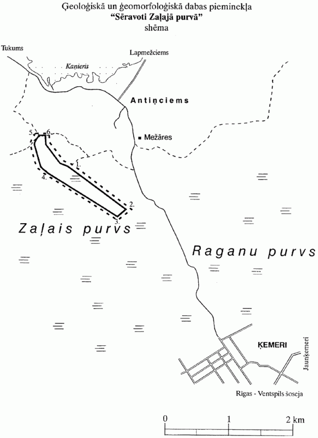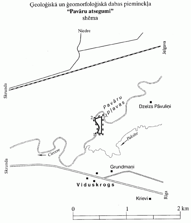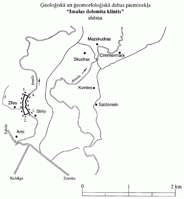 Pa stāvā krituma un tam sekojošā lēzenākā krituma robežlīniju 180 m uz austrumiem, 100 m uz ziemeļrietumiem, 150 m uz ziemeļiem un 120 m uz ziemeļaustrumiem līdz stigai starp 52. un 53.kvartālu |