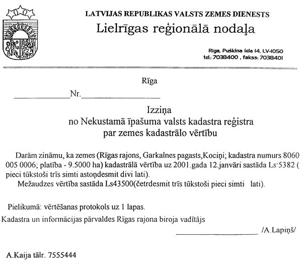 16.Vērtētājs sagatavo izziņu no NĪVKR par zemes kadastrālo vērtību vai zemes kadastrālo vērtību nodoklim (6.pielikums, 7.pielikums).