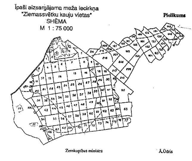 1. Lai saglabātu 1916. gada Ziemassvētku kauju vēsturisko piemiņu, izveidot īpaši aizsargājamu meža iecirkni «Ziemassvētku kauju vietas»: