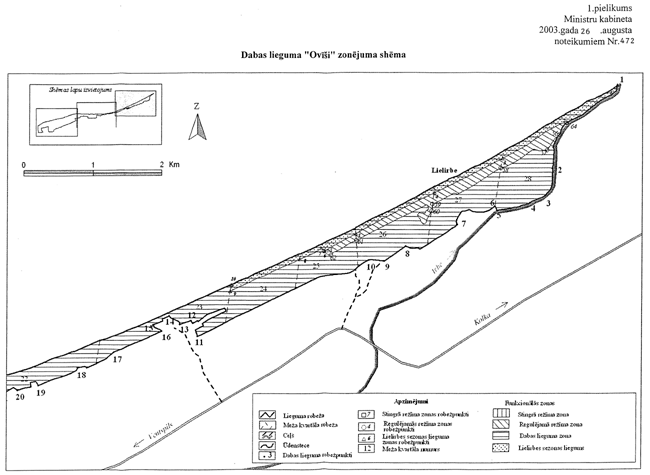 Dabas lieguma “Ovīši” funkcionālo zonu un Lielirbes sezonas lieguma robežu apraksts