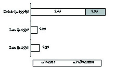 Dati: KM finansu atskaites, Statistical Yearbook of Sweden '97, 401.lpp., Danish Cultural Policy, 1999, 9.lpp.