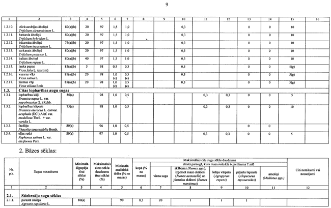 38.4 Seradellas (Ornithopus sativus) sēklu tīrība ir ne mazāka par 85 %, dīgtspēja ne mazāka par 70 % un cieto sēklu saturs ne vairāk par 20 %.”