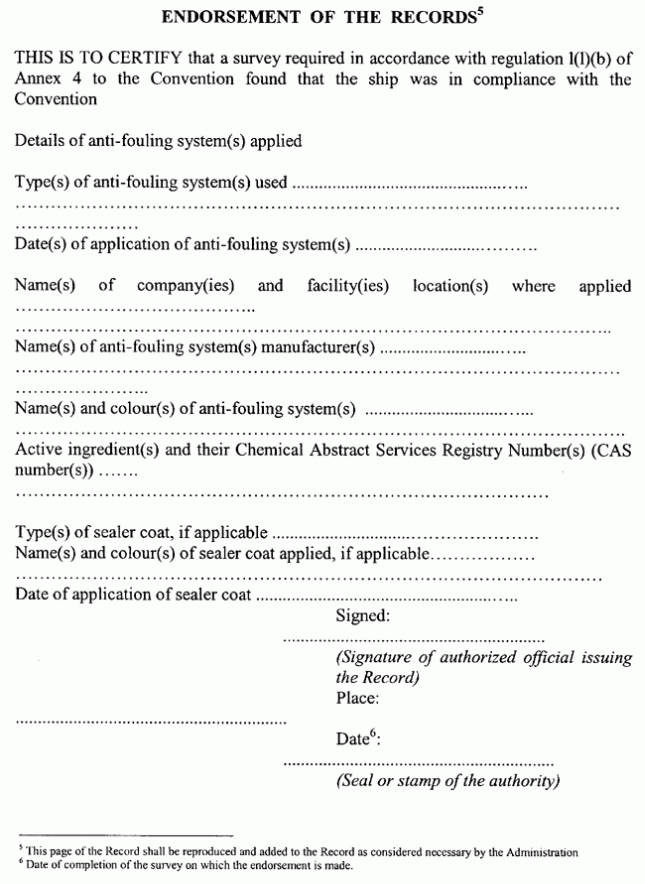 (a) verifying that, where required, there is onboard a valid International Anti-fouling System Certificate or a Declaration on Anti-fouling System; and/or