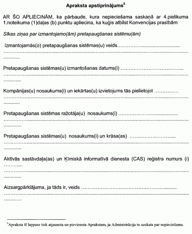 Starptautiskā pretapaugšanas sistēmas sertifikāta izsniegšana vai apstiprināšana