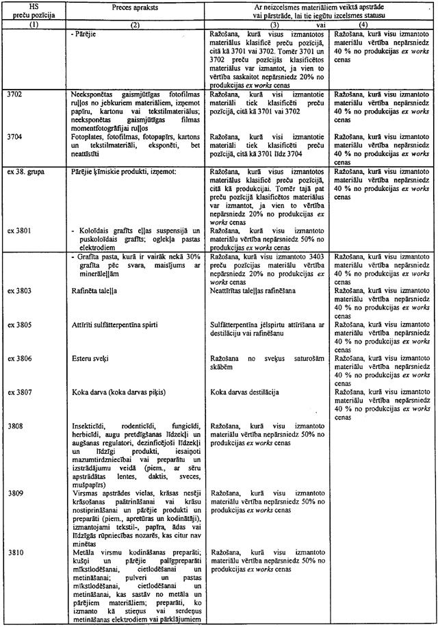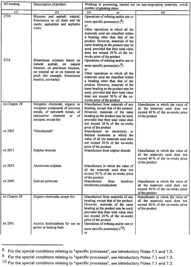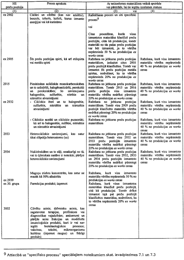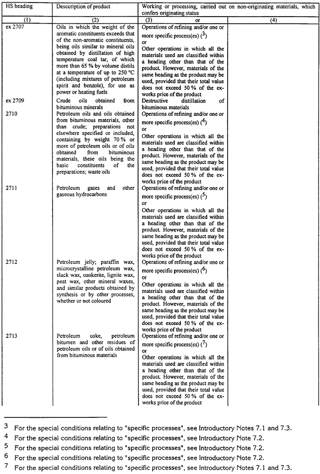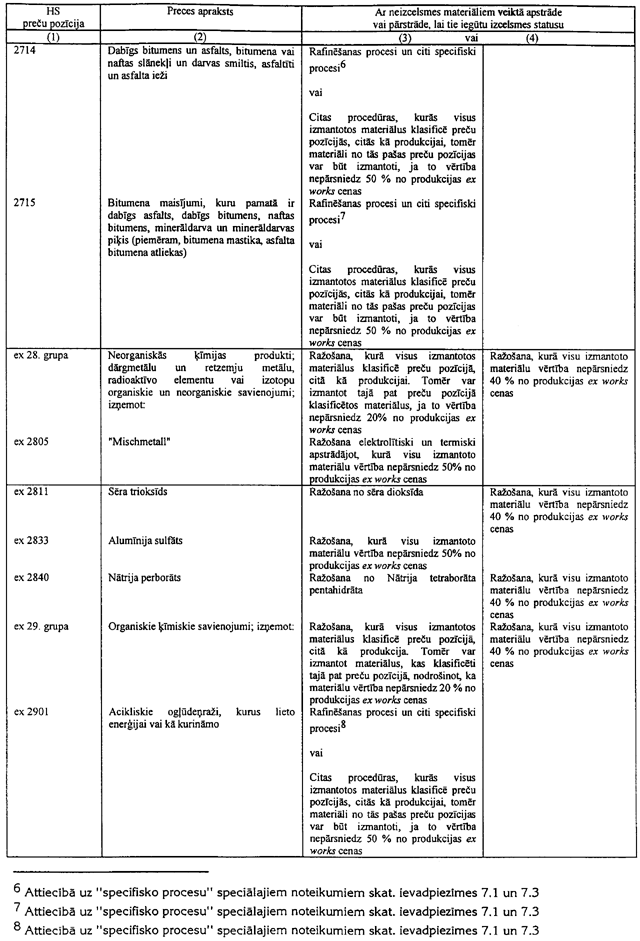 7.1. Preču pozīciju ex 2707, 2713 līdz 2715, ex 2901, ex 2902 un ex 3403 nolūkos, "specifiski procesi" ir sekojošie: