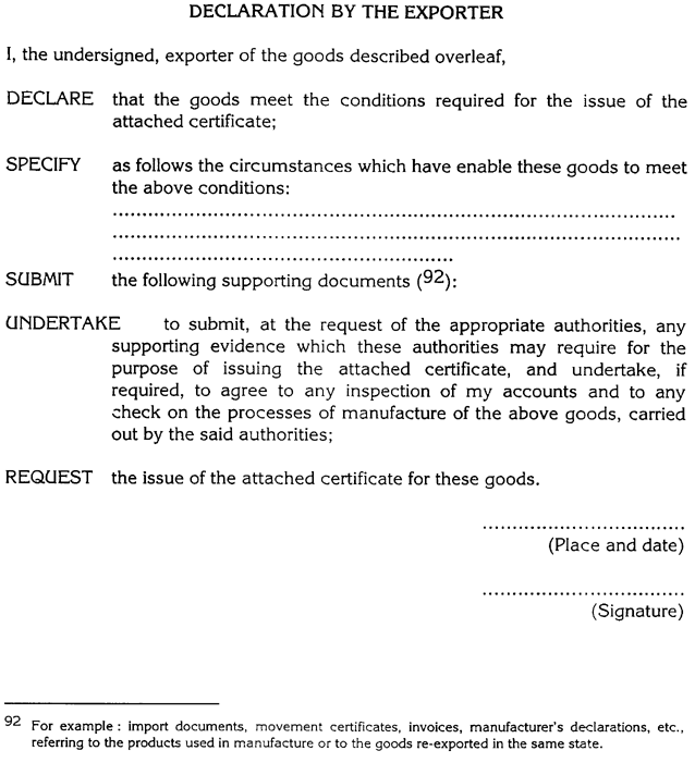Exemptions from proof of origin |