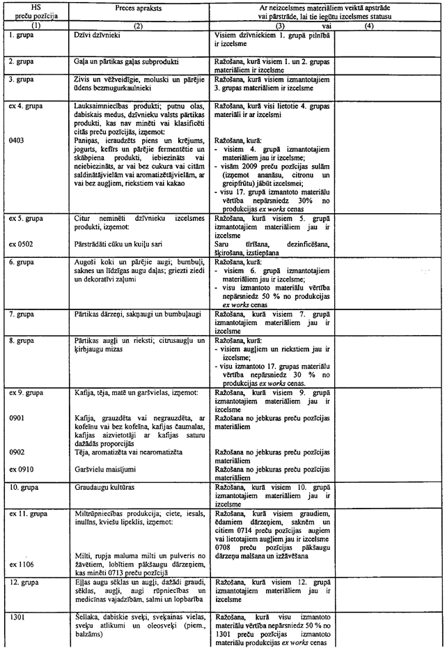 Visas sarakstā uzskaitītās preces var arī nebūt iekļautas šajā Līgumā. Tādēļ nepieciešams ņemt vērā citas Līguma daļas.