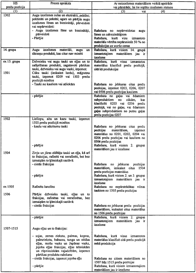 Citi negaistoši augu tauki un eļļas (izņemot jojobas eļļa un tās frakcijas) un to frakcijas, arī rafinētas, bet bez ķīmiskā sastāva izmaiņām