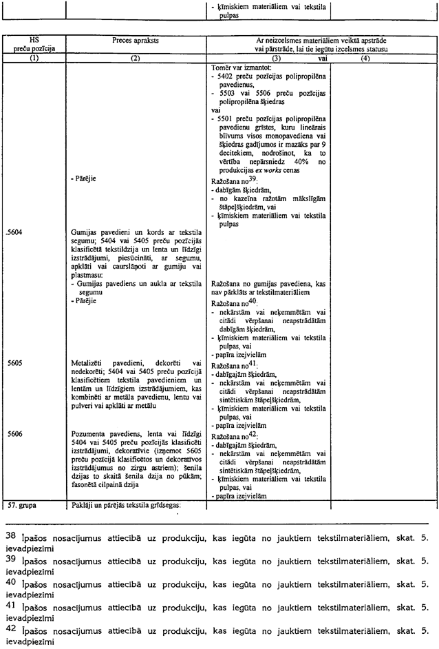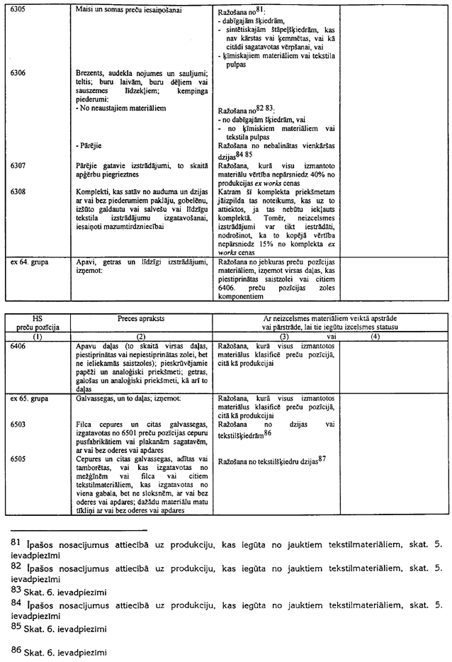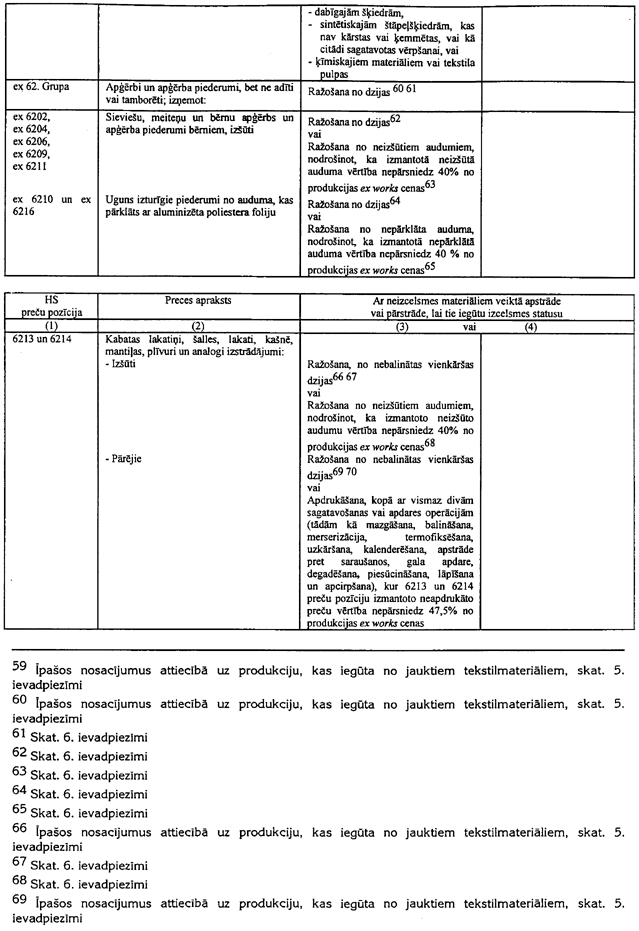 6.2. Neietekmējot 6.3.piezīmes nosacījumus, materiāli, kuri netiek klasificēti 50. līdz 63. grupās, var tikt brīvi izmantoti tekstilprodukcijas ražošanai, neatkarīgi no tā vai tie satur vai nesatur tekstilu.