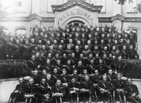 1940.gadi: pēdējais Latvijas karaskolas izlaidums, vidū profesors Augusts Kirhenšteins Foto no Andra Kļaviņa personiskā arhīva |