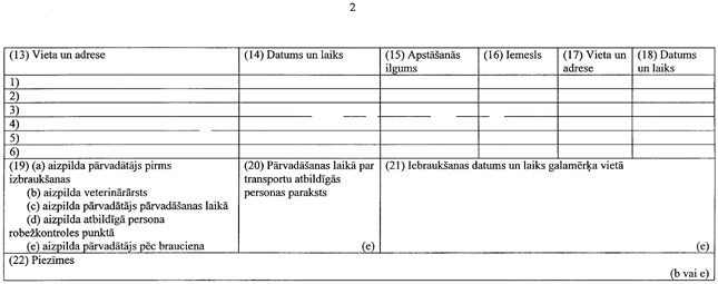 18. Ja dzīvnieku pārvadā uz Eiropas Savienības dalībvalstīm vai citām valstīm vai ja pārvadāšanas ilgums no izbraukšanas vietas līdz galamērķa vietai pārsniedz astoņas stundas: