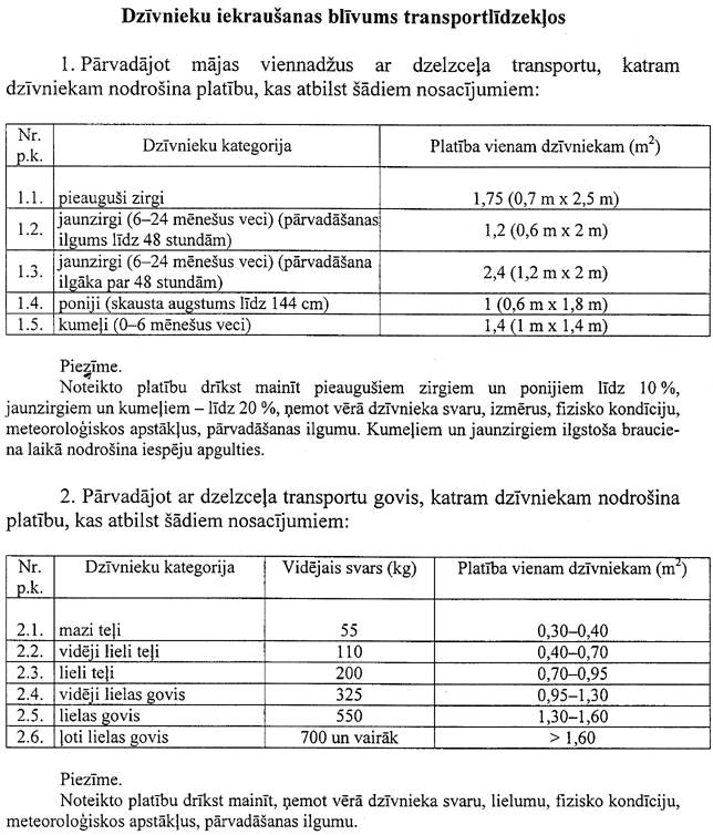 10.1. transportlīdzeklis atbilst dzīvnieku pārvadāšanas labturības prasībām;