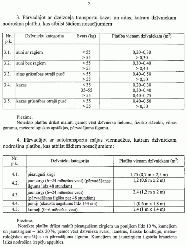 2. Noteikumi nosaka dzīvnieku pārvadāšanas kārtību un labturības prasības dzīvnieku pārvadāšanai transportlīdzekļos, kā arī dzīvnieku īpašnieka un pārvadātāja tiesības un pienākumus pārvadāšanas laikā.