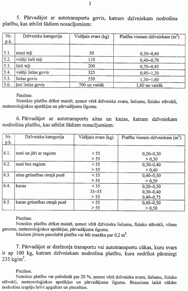 3. Noteikumi attiecas uz mājas viennadžu, govju, aitu, kazu, cūku, mājputnu, trušu, kaķu, suņu, putnu, citu zīdītāju, mugurkaulnieku un aukstasiņu dzīvnieku pārvadāšanu.