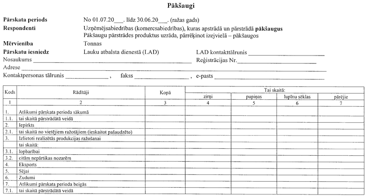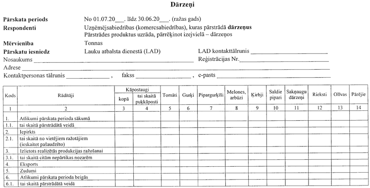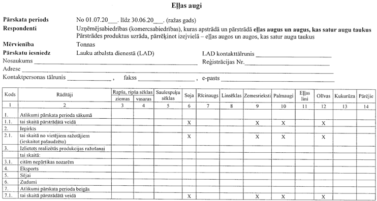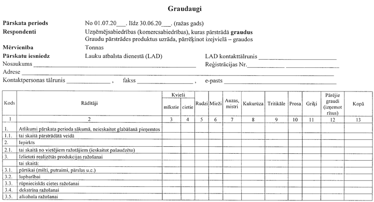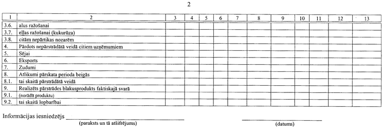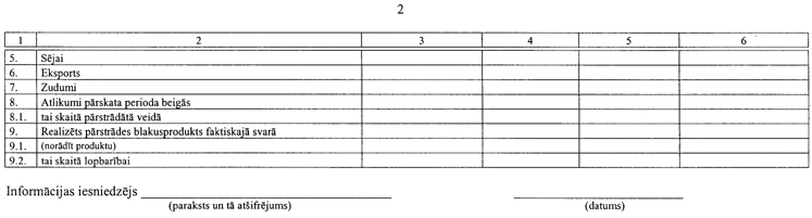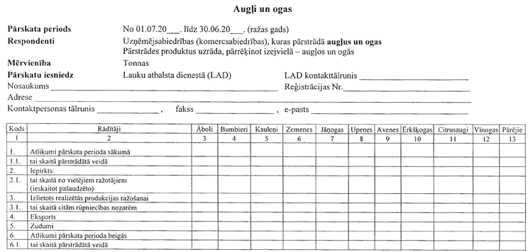 6. Katru gadu iesniedzama informācija par pārskata periodu no iepriekšējā gada 1.jūlija līdz kārtējā gada 30.jūnijam šādu augkopības produktu ražošanas un patēriņa bilanču sastādīšanai: