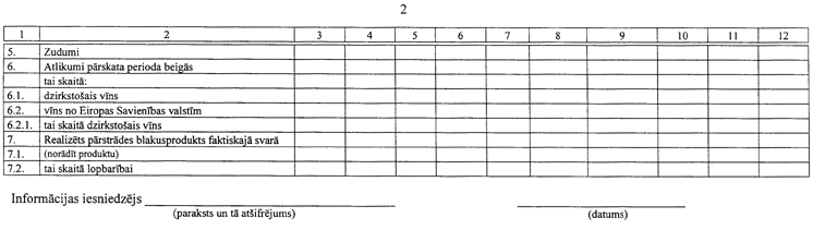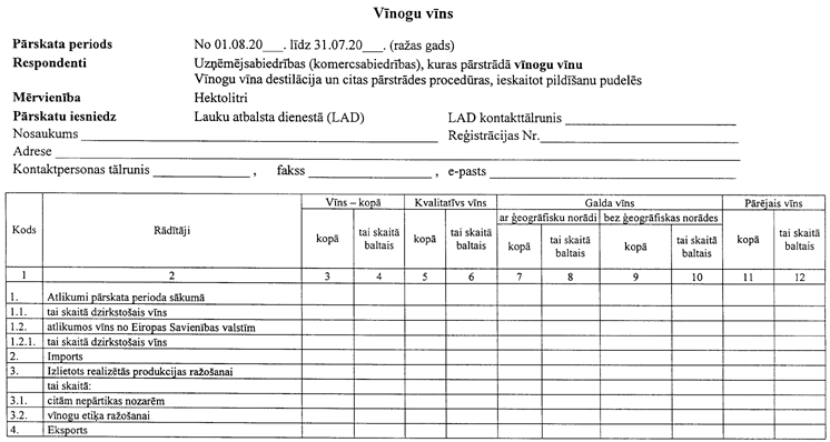 7. Katru gadu iesniedzama informācija par pārskata periodu no iepriekšējā gada 1.augusta līdz kārtējā gada 31.jūlijam vīnogu vīna ražošanas un patēriņa bilanču sastādīšanai (7.pielikums).