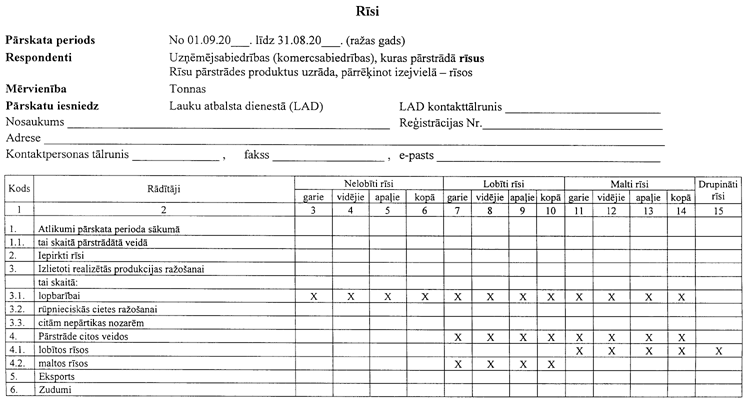 8. Katru gadu iesniedzama informācija par pārskata periodu no iepriekšējā gada 1.septembra līdz kārtējā gada 31.augustam rīsu ražošanas un patēriņa bilanču sastādīšanai (8.pielikums).