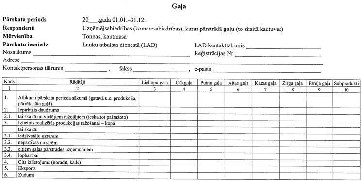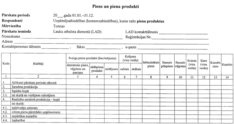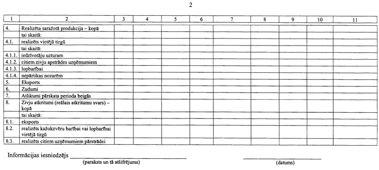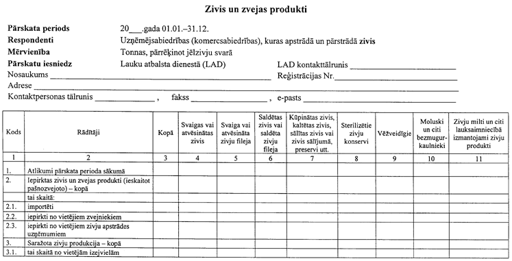 9. Katru gadu iesniedzama informācija par pārskata periodu no iepriekšējā gada 1.janvāra līdz 31.decembrim šādu lopkopības un zivsaimniecības produktu ražošanas un patēriņa bilanču sastādīšanai:
