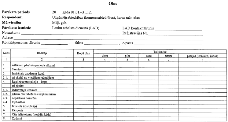 5.4. lauksaimniecības produktu atlikumu (pārskata perioda sākumā un beigās);