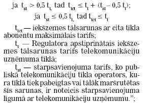 “10.7. Vietējās sarunas tarifs ar cita tīkla abonentu nevienā cenu perioda brīdī nedrīkst pārsniegt pakalpojuma maksimālo pieļaujamo tarifu, kas aprēķināts saskaņā ar šādām formulām