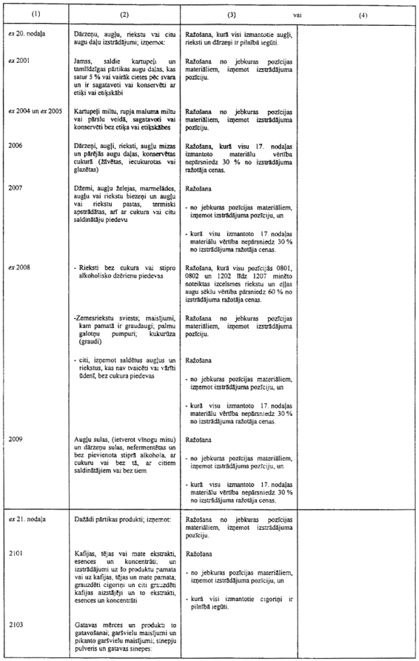 2) ir vajadzīgas arī pārstrādes noteikumu tehniskas izmaiņas, lai ņemtu vērā izmaiņas Preču aprakstīšanas un kodēšanas harmonizētajā sistēmā ("Harmonizētajā sistēmā"), kas ir spēkā kopš 2002. gada 1. janvāra;
