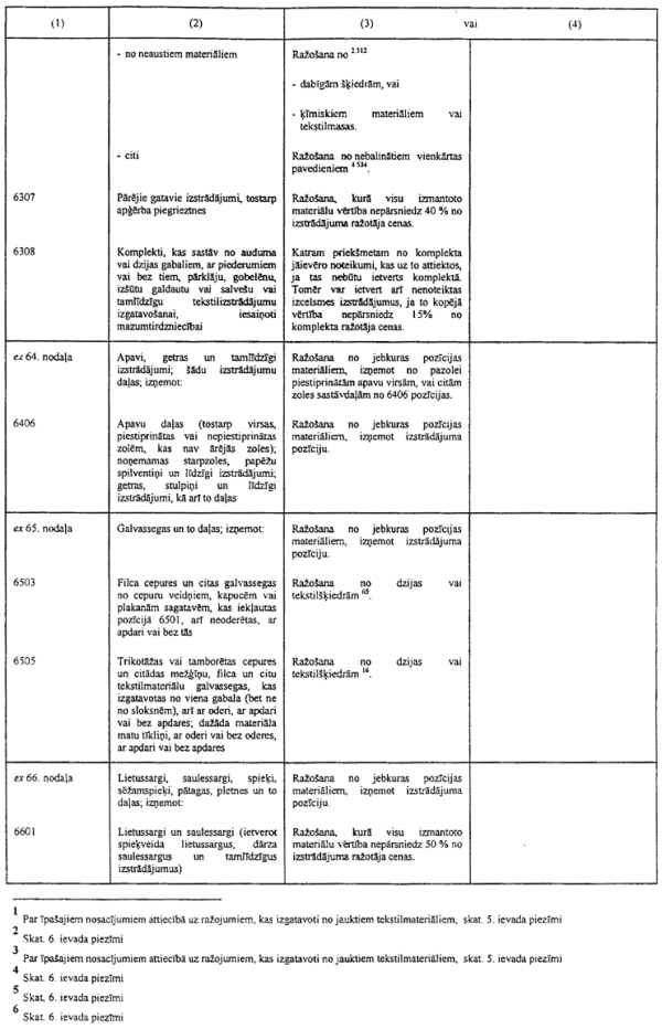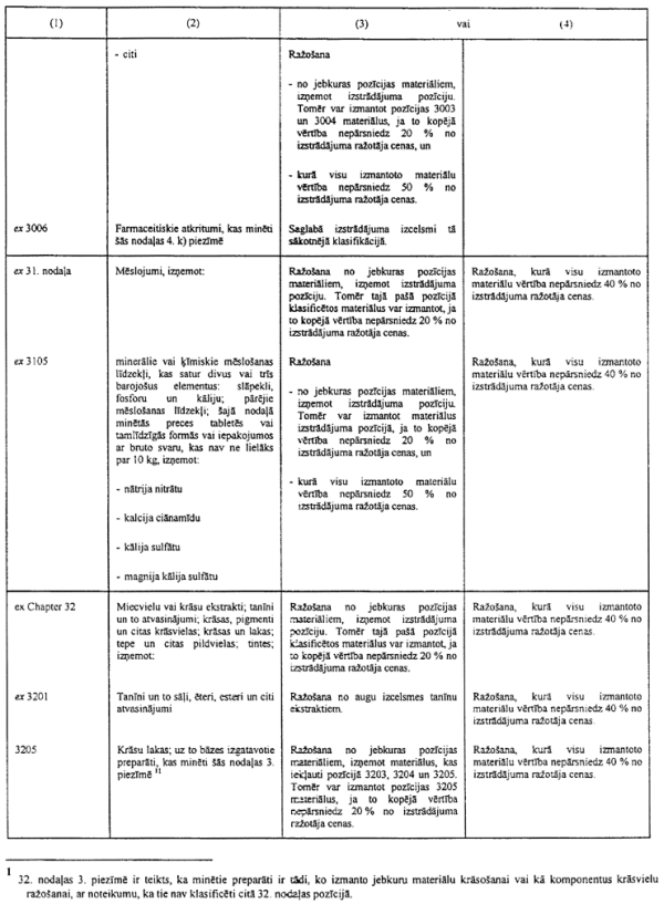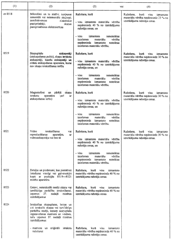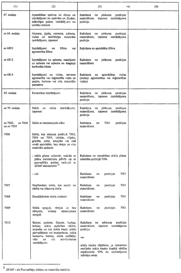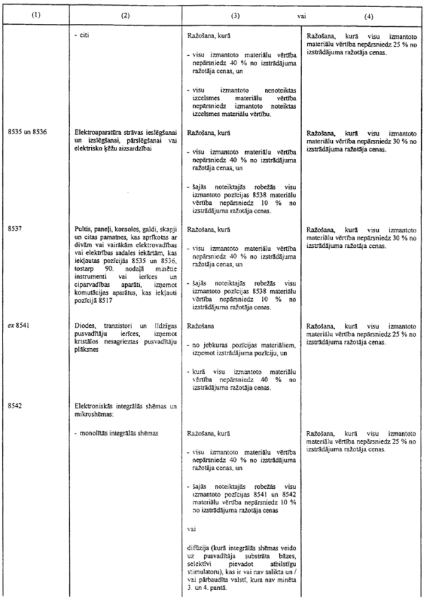 3) ir jāgroza dažas prasības attiecībā uz nenoteiktas izcelsmes materiālu pārstrādi, lai tie iegūtu noteiktas izcelsmes statusu, ņemot vērā to, ka daži materiāli Nolīguma dalībvalstīs netiek ražoti, kā arī īpašos dažu izstrādājumu ("monolītas integrālās shēmas") ieguves apstākļus, kas saistās ar ierobežotu apstrādi ārpus Nolīguma dalībvalstīm;