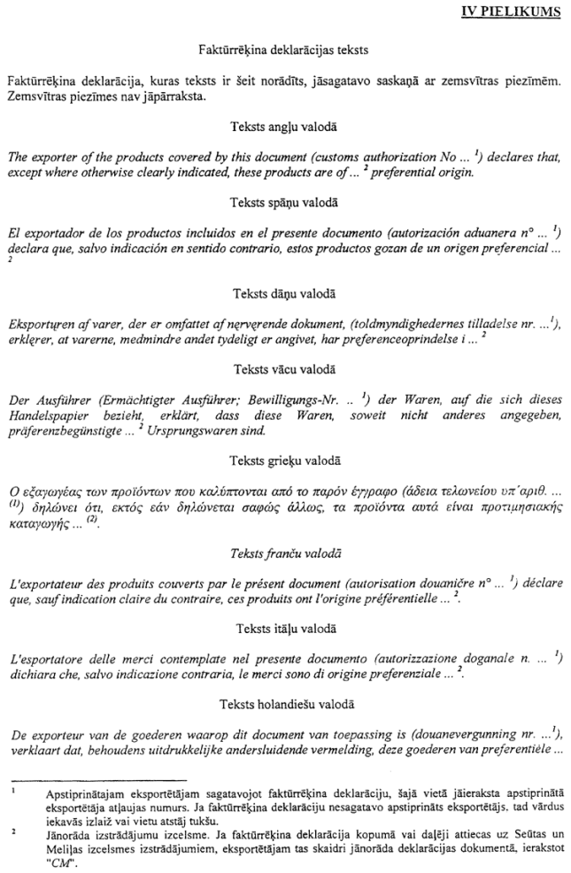 1. Products originating in the Republic of San Marino shall be accepted by Latvia as originating in the Community within the meaning of this Agreement.