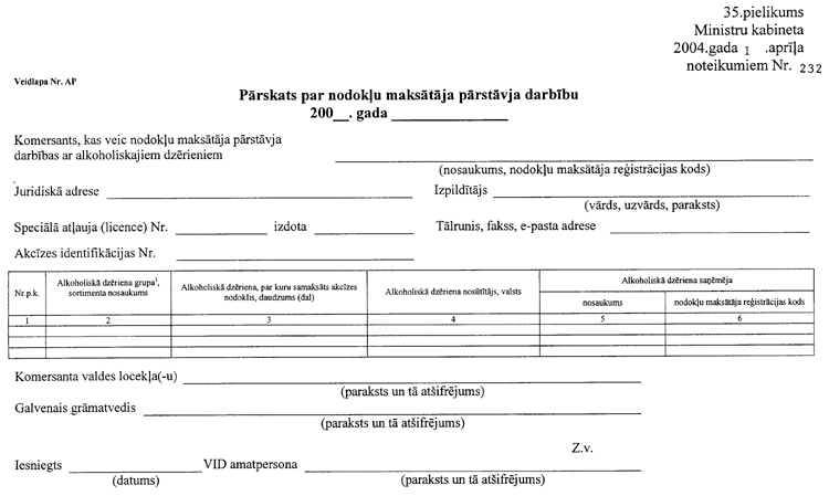 169. Komersants, kurš saņēmis vienu no šo noteikumu 8.punktā minētajām speciālajām atļaujām (licencēm) (izņemot speciālo atļauju (licenci) alkoholisko dzērienu vai tabakas izstrādājumu mazumtirdzniecībai) vai veic darbības ar akcīzes precēm kā neapstiprināts tirgotājs, pārsūtītājtirgotājs vai importētājs, katru mēnesi līdz piecpadsmitajam datumam iesniedz Valsts ieņēmumu dienestā pārskatu par alkoholisko dzērienu (izņemot alu), tabakas izstrādājumu un degvielas apriti iepriekšējā mēnesī (15., 16., 17., 18., 19., 20., 21., 22., 23., 24., 25., 26., 27., 28., 29., 30., 31., 32., 33., 34. un 35.pielikums).