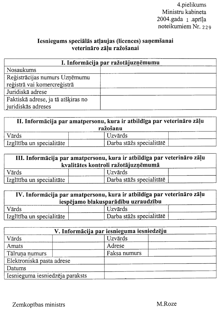 Iesniegums speciālās atļaujas (licences) saņemšanai veterināro zāļu ražošanai