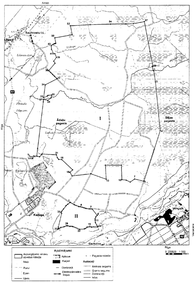 11. Noteikumu 7., 8., 9. un 10.pielikuma robežpunktu koordinātas ir programmatūras Esri ArcView 8,3 aprēķinātās apveidfailu (*.shp) visu lūzuma punktu koordinātas Latvijas koordinātu sistēmā LKS 92 (Transversā Merkatora projekcija, mēroga faktors — 0,9996, ass meridiāns — 24 E), kas noapaļotas līdz 1m. Par kartogrāfisko pamatu izmantoti Valsts zemes dienesta ortofoto uzņēmumi mērogā 1:10 000."