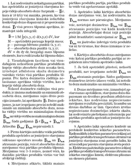 2.1.2. 0,5 Gy, lietojot pārbaudes ierīces, kas izstaro rentgenstarojumu ar maksimālo enerģiju 10 MeV, vai mērīšanas vai pārbaudes ierīces, kas izstaro cita veida jonizējošo starojumu ar maksimālo enerģiju 5 MeV;