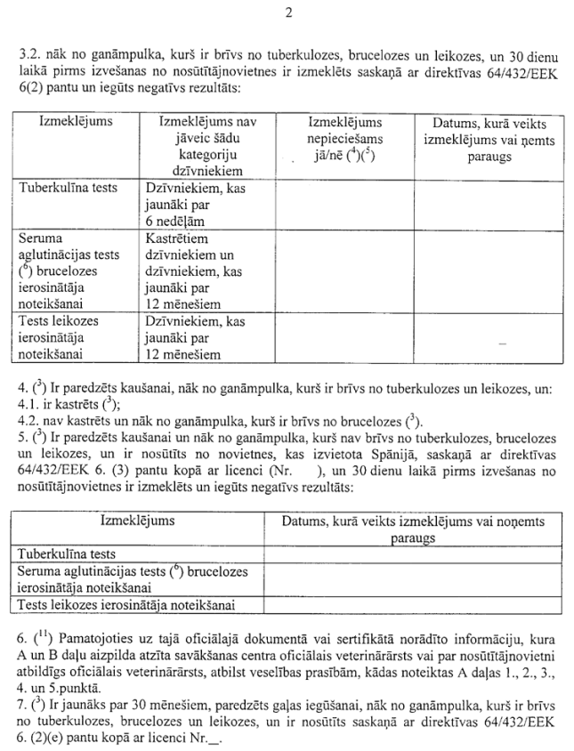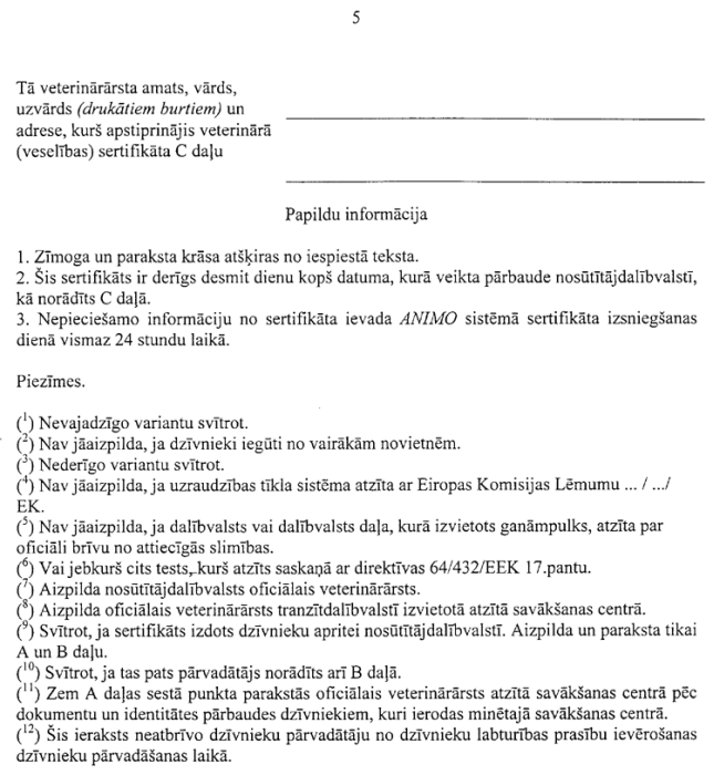 5.3. govis un cūkas nav no novietnes vai vietas, kurai dzīvnieku veselības apsvērumu dēļ noteikts aizliegums vai ierobežojums saskaņā ar Eiropas Savienības normatīvajiem aktiem;