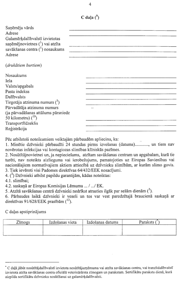 15.2. par tranzīta savākšanas centru atbildīgais oficiālais veterinārārsts aizpilda otru veterināro (veselības) sertifikātu un norāda šo noteikumu 15.1.apakšpunktā minētā veterinārā (veselības) sertifikāta sērijas numuru;