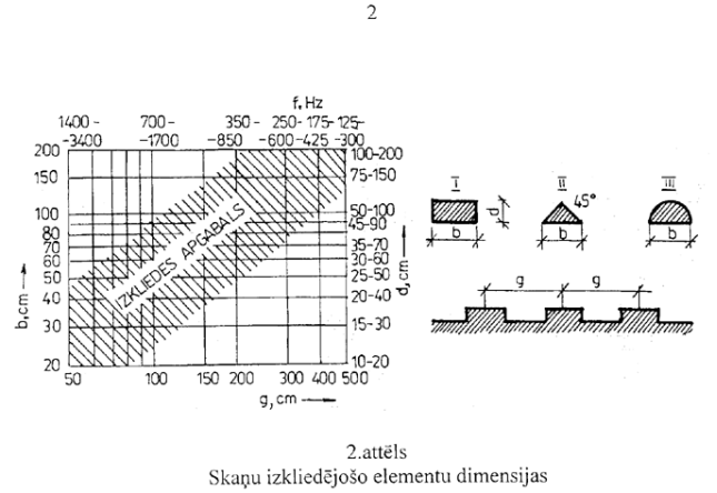24. Izkliedējoši atstarojošos elementus (izkliedētājus) veido izteikti telpiskus, kas nodrošina skaņu izkliedi robežās, kas norādītas šī būvnormatīva 2.pielikuma 1.attēlā.