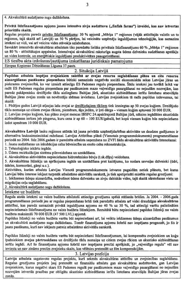 1.2. pozīcija Nr.1 “Priekšlikums Eiropas Savienības Padomes regulai, kas paredz grozījumu regulā 2792/1999, kas nosaka sīki izstrādātus Eiropas Kopienas noteikumus un kārtību attiecībā uz strukturālo palīdzību zivsaimniecības nozarei (ZVFI)”.