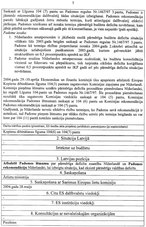 1.2. pozīcija Nr.1 “Stabilitātes un izaugsmes pakts — Pārmērīga deficīta procedūras piemērošana Nīderlandei”;