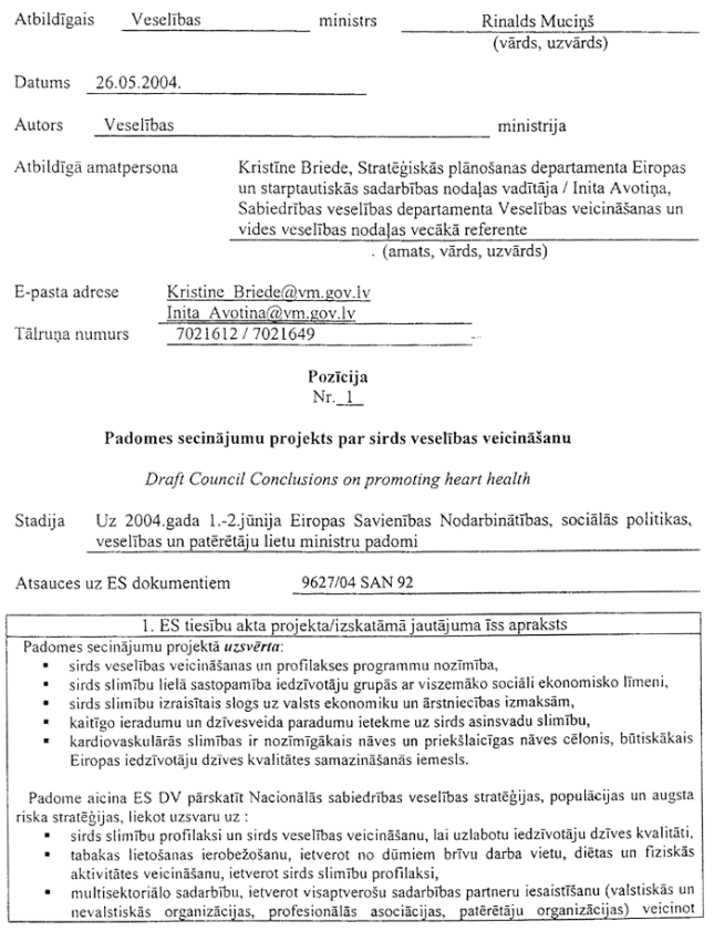 1.1. pozīcija Nr.1 “Padomes secinājumu projekts par sirds veselības veicināšanu”;