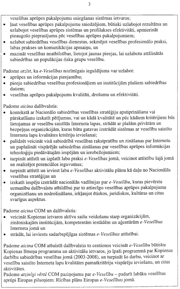 Par Komisijas paziņojumu Padomei, Eiropas Parlamentam,Eiropas Ekonomikas un sociālajai komitejai un Reģionu komitejai par e-Veselību — padarīt labāku veselības aprūpi Eiropas pilsoņiem: Rīcības plāns Eiropas e-Veselības jomā — un Padomes secinājumu projektu par e-Veselību