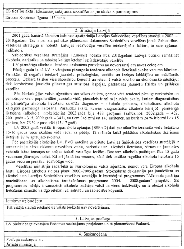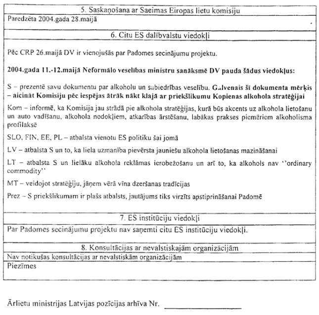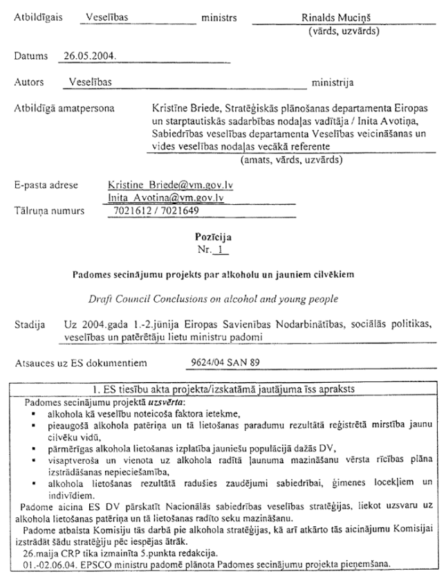 1.6. pozīcija Nr.1 “Padomes secinājumu projekts par alkoholu un jauniem cilvēkiem”;