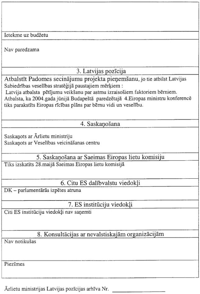 1.7. pozīcija Nr.1 “Padomes secinājumu projekts par bērnu astmu”;
