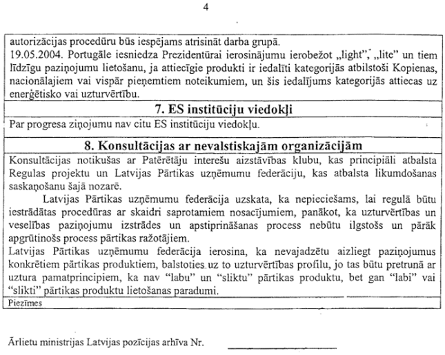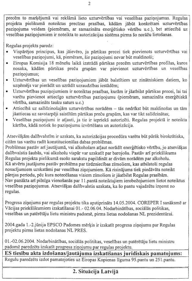 1.8. pozīcija Nr.2 “Progresa ziņojums par Eiropas Parlamenta un Padomes regulas projektu par uzturvērtības un veselības paziņojumu norādi pārtikas preču marķējumā”;