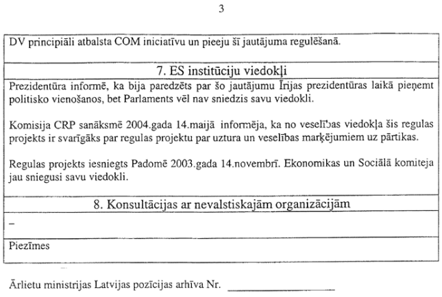 1.9. pozīcija Nr.1 “Progresa ziņojums par Eiropas Parlamenta un Padomes regulas projektu par vitamīnu, minerālvielu un citu vielu pievienošanu pārtikai”;