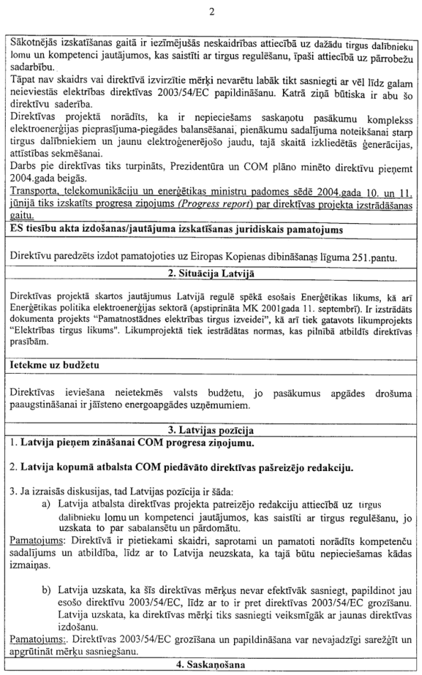 2. Valdības pārstāvjiem darboties atbilstoši Ministru kabineta apstiprinātajām pozīcijām.