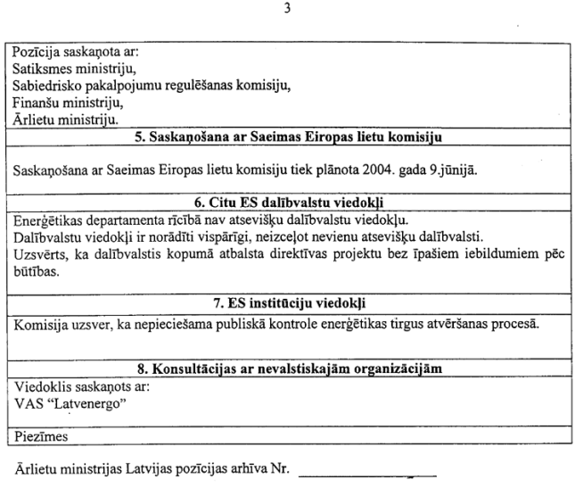 3. Latvijas pastāvīgās pārstāvniecības Eiropas Savienībā vadītāja vietniekam E.Stiprajam 2004.gada 10.jūnijā pārstāvēt Latvijas Republiku Eiropas Savienības Transporta, telekomunikāciju un enerģētikas ministru padomes sanāksmē.