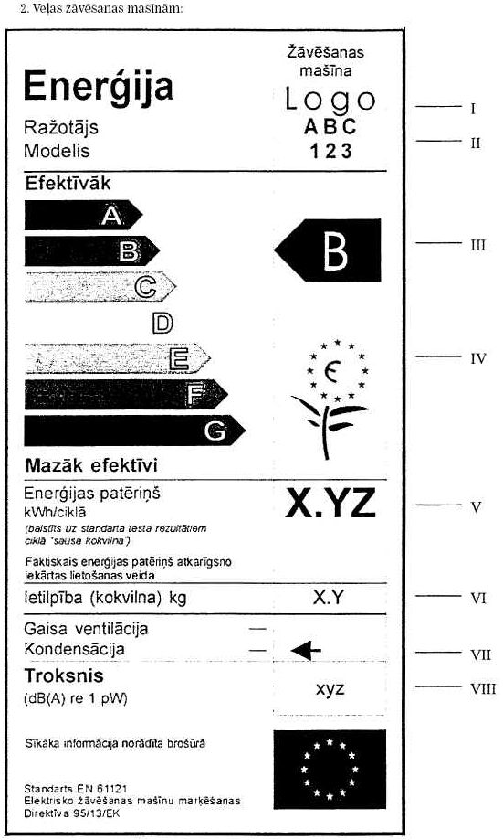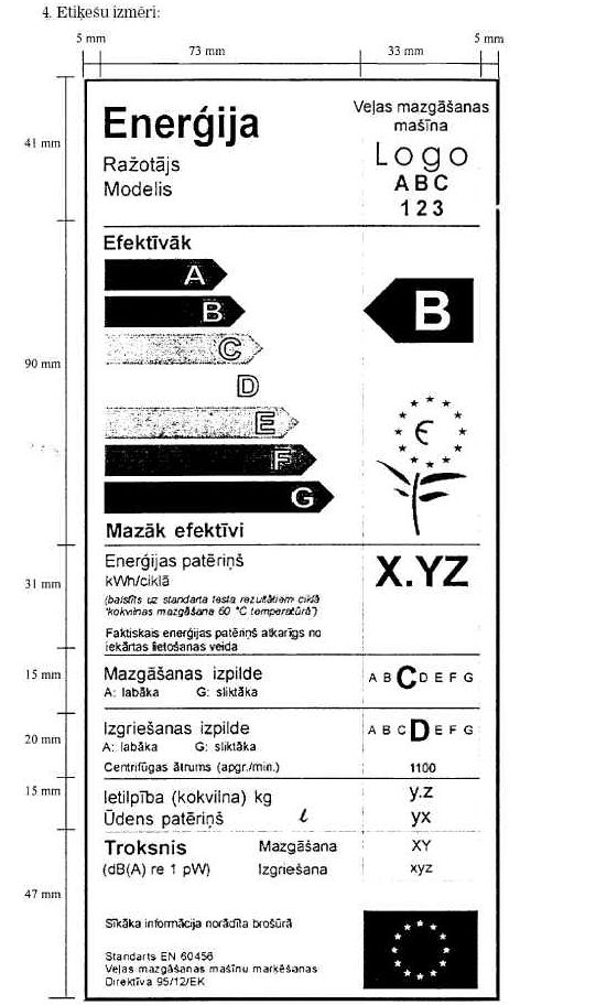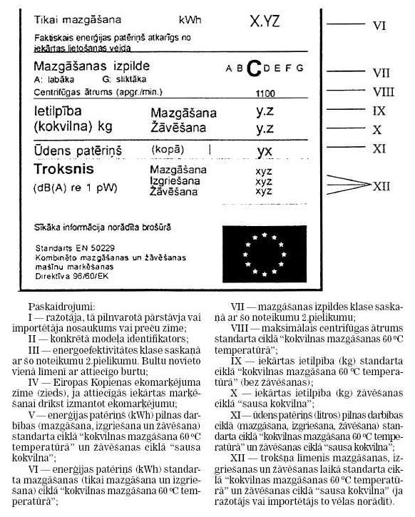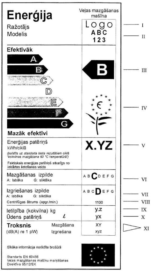 1) Komisijas 1995.gada 23.maija Direktīvas 95/12/EEK, ar kuru īsteno Padomes 1992.gada 22.septembra Direktīvu 92/75/EEK attiecībā uz enerģijas etiķetēm mājsaimniecības veļas mazgājamām mašīnām;