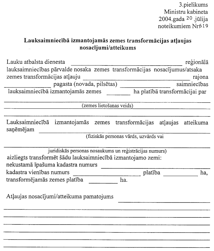 10. Dienesta reģionālā lauksaimniecības pārvalde 30 dienu laikā pēc iesnieguma saņemšanas pieņem lēmumu par atļaujas izsniegšanu (2.pielikums), par atļaujas nosacījumiem vai par atļaujas atteikumu (3.pielikums). Minēto lēmumu un tā pamatojumu paziņo transformācijas ierosinātājam.