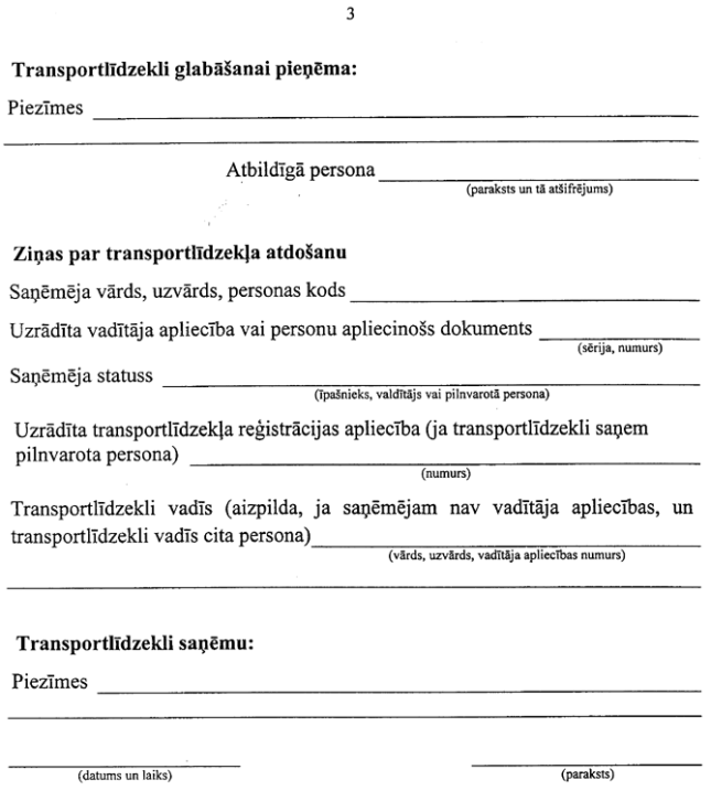11.2. pārvietošanas protokolā parakstās par transportlīdzekļa saņemšanu;