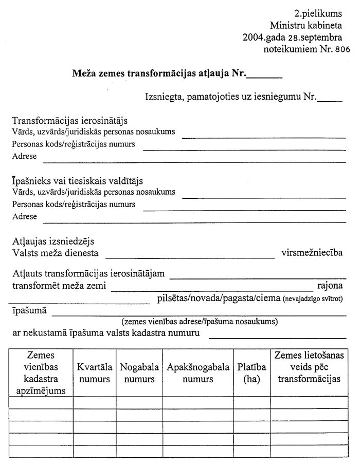 28. Ja transformāciju atļauts veikt tikai ar ikreizēju Ministru kabineta rīkojumu, virsmežniecība: