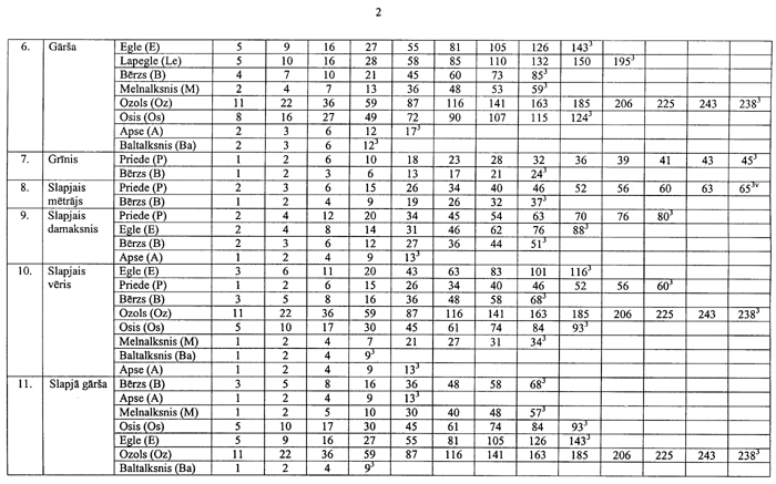 R tv — viena hektāra dabiskās meža vides relatīvā vērtība atkarībā no meža augšanas apstākļu tipa (ha-1) (4.pielikums);