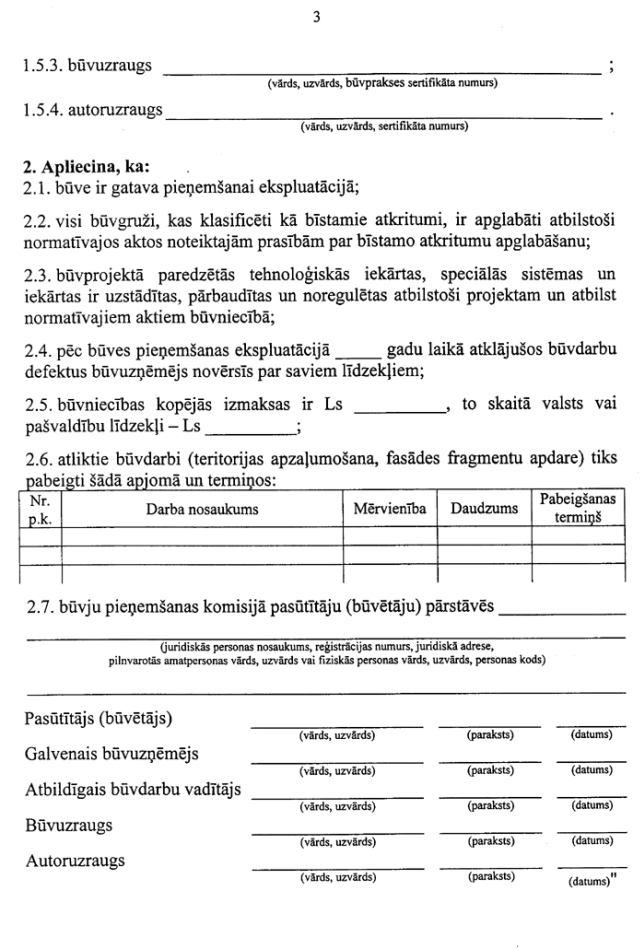 "9.4. būvprojekta autors, ja objektā nav veikta autoruzraudzība un ekspluatācijā tiek nodota sabiedriski nozīmīga vai inženiertehniski sarežģīta būve vai ja tas ir arhitektūras konkursa projekts. Nozīmīgumu vai sarežģītību būvatļaujā norāda būvatļaujas izsniedzējs;".